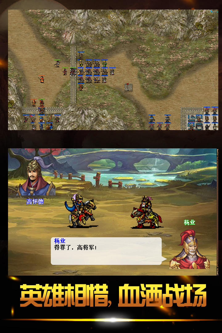 杨家将演义是一款考验玩家策略的角色扮演策略战棋游戏,玩家将扮演杨家英雄保家卫国对抗辽军。当时,杨家豪杰令辽兵闻风丧胆,然而奸臣当道,潘仁美欲置杨门豪杰死地而后快,于是凶险非常,一场场血战展开了。